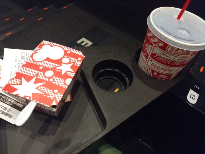今回、映画でスパイシーチキンとドリンクLサイズのセットを買って食べながら見ました。ドリンクは、ファーストフード店のドリンクの感覚で買ってしまい来た時「思ったよりでかいな」思いました。スパイシーチキンは、ピリ辛という感じでおいしかったです。