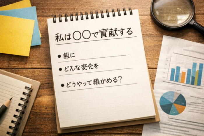 強みを活かす一歩目は、実はとてもシンプルです。「私は、何によって貢献するのか」を一文にしてみる。これだけで、日々の仕事の見え方が変わります。