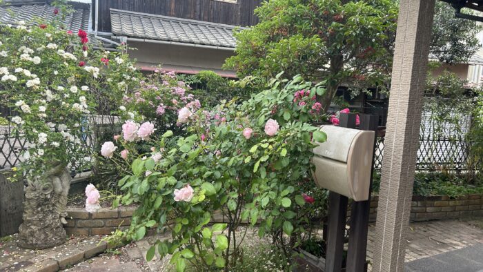 春になると、バラがたくさん咲く庭。